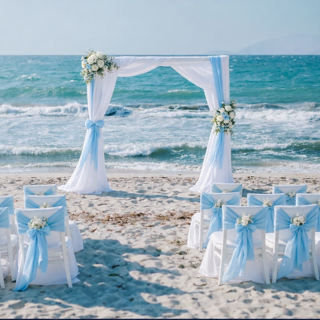 Enjoy the breathtaking beauty of a Beachfront Cliff View, the elegance of Fairy Lights by the Sea, or the modern vibe of a Beach Lounge Style.