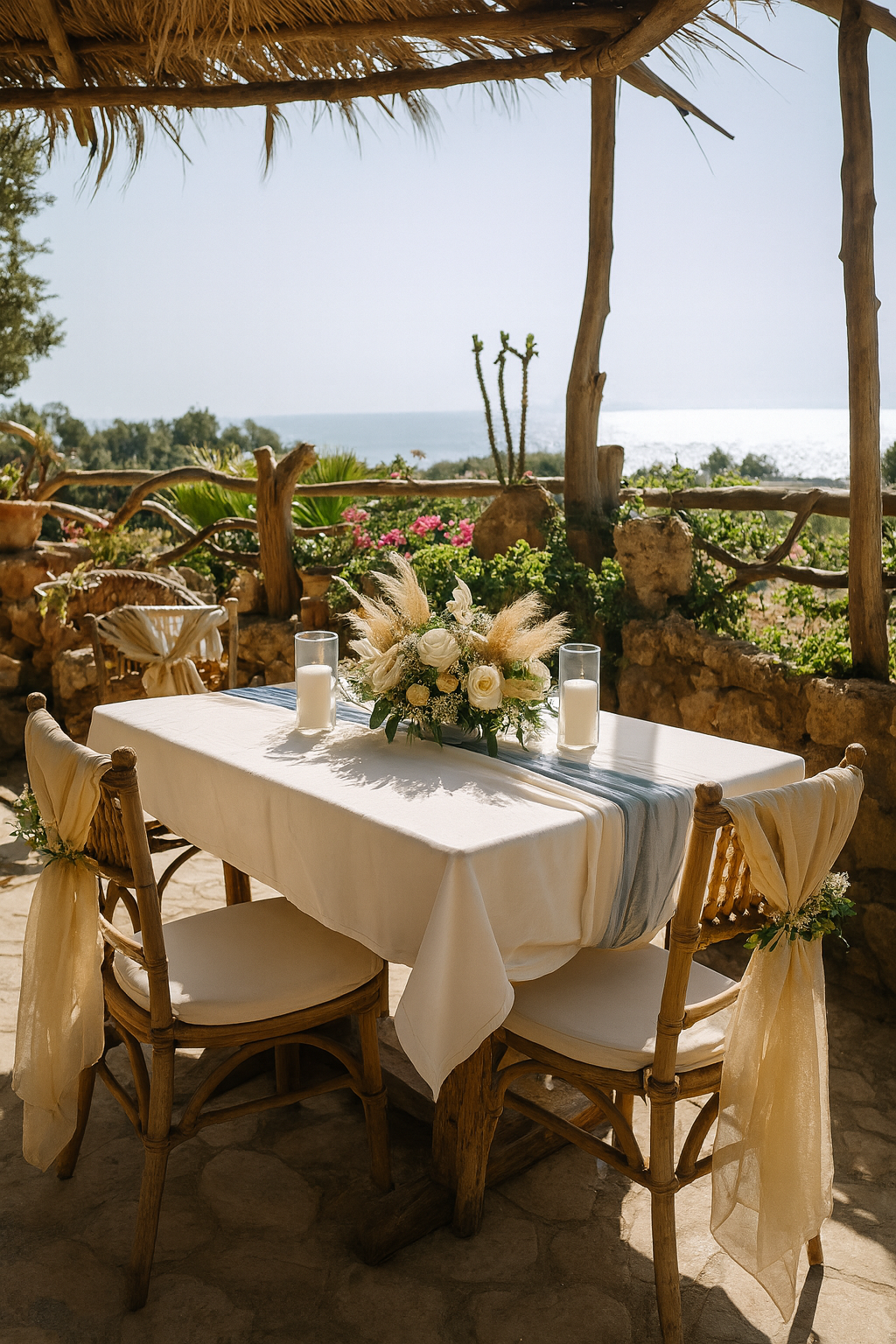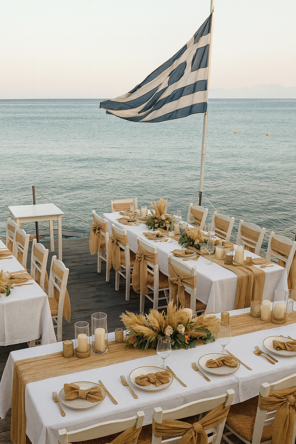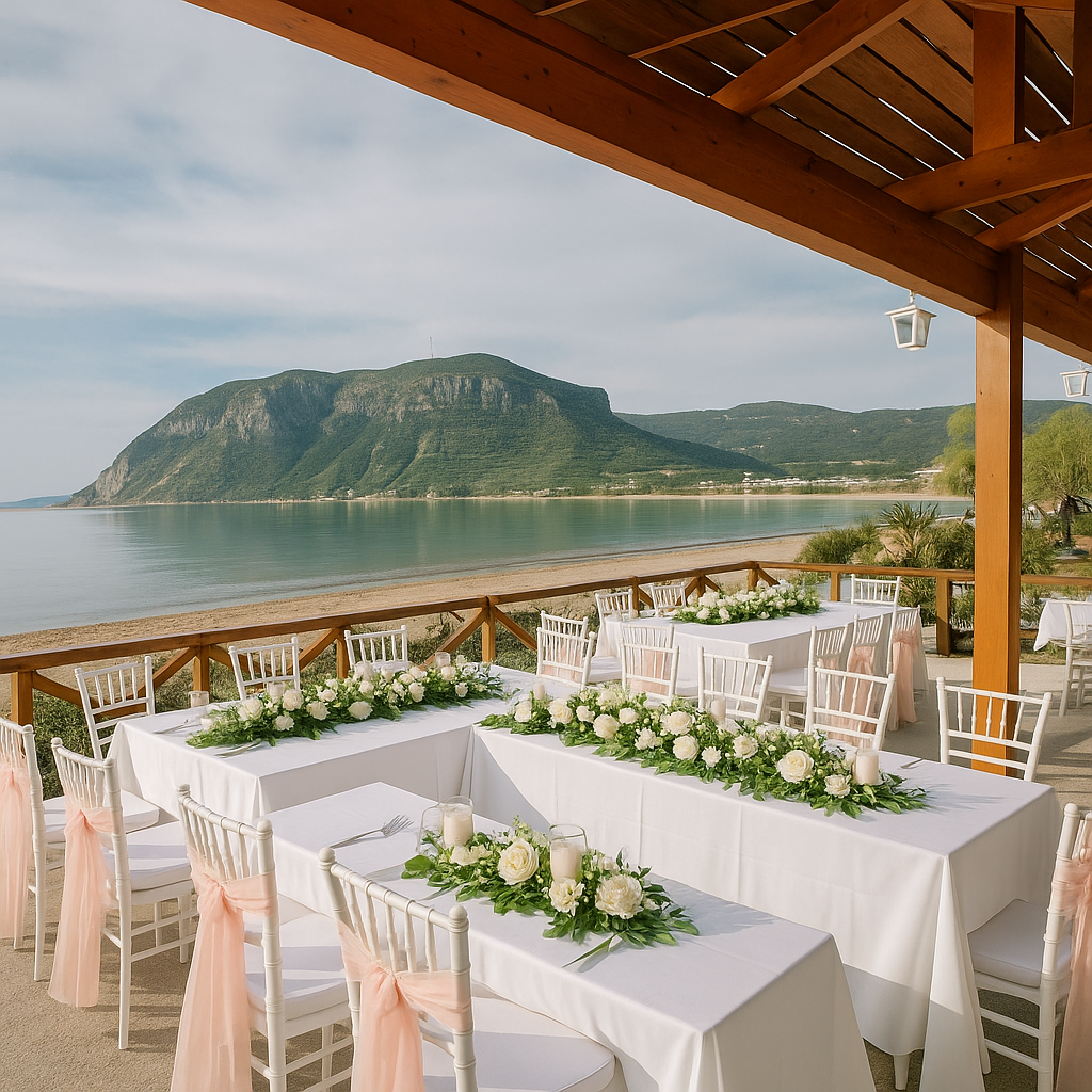 APLO is a beautiful beachfront restaurant in Mastichari, offering stunning sunsets, a private beach, and a relaxed, elegant atmosphere. The most beautiful part of the venue is reserved exclusively for your wedding reception at no extra charge, giving you complete privacy and a romantic setting for your celebration. This restaurant offers traditional cuisine, giving you the chance to choose between a traditional meze-style menu or an A la carte menu. A short price list is provided below to help you explore the options that best suit your celebration.