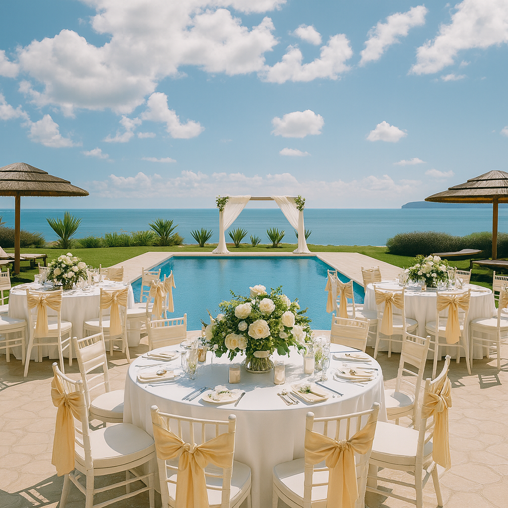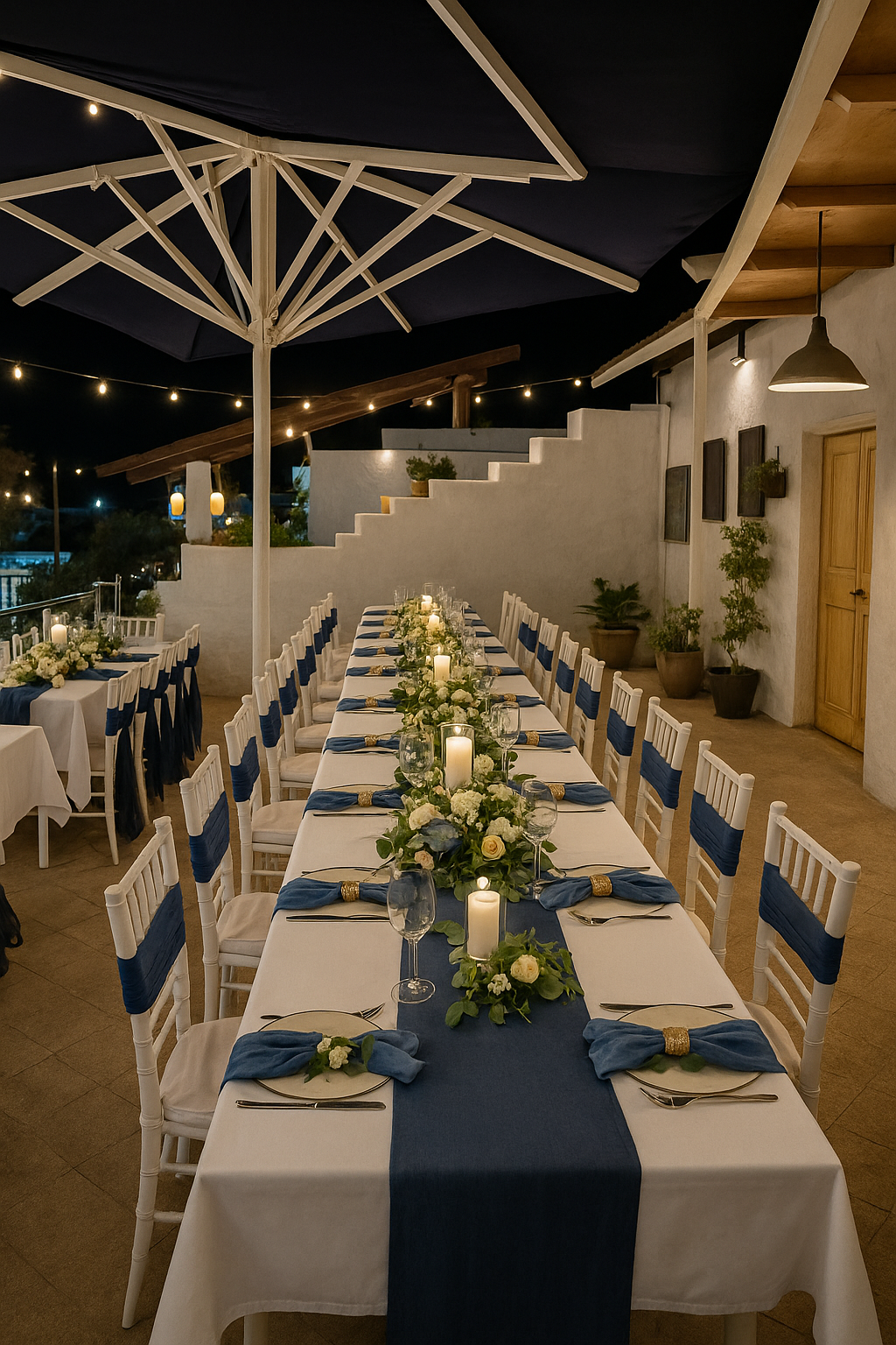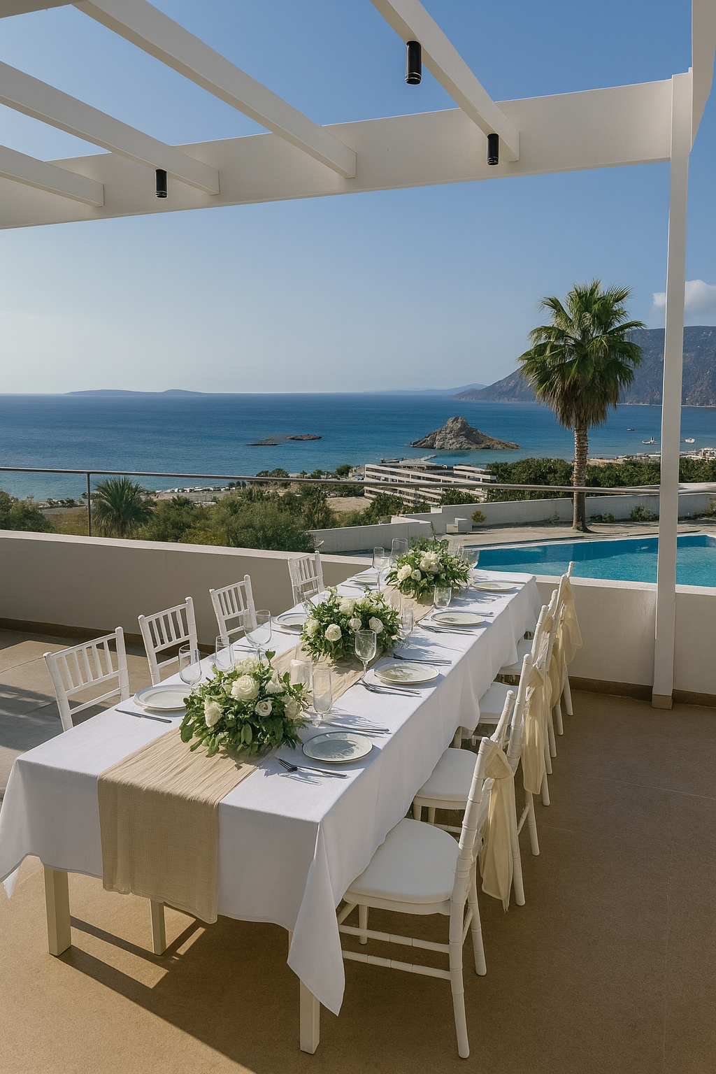 Celebrate your reception in the warm embrace of a private villa—where elegance, intimacy, and the soft glow of the Aegean create an atmosphere that feels both luxurious and deeply personal. Surrounded by serene beauty, a villa reception offers the perfect blend of comfort, exclusivity, and romantic charm. You and your guests can enjoy a relaxed dining experience with a delicious barbecue buffet, prepared on-site.