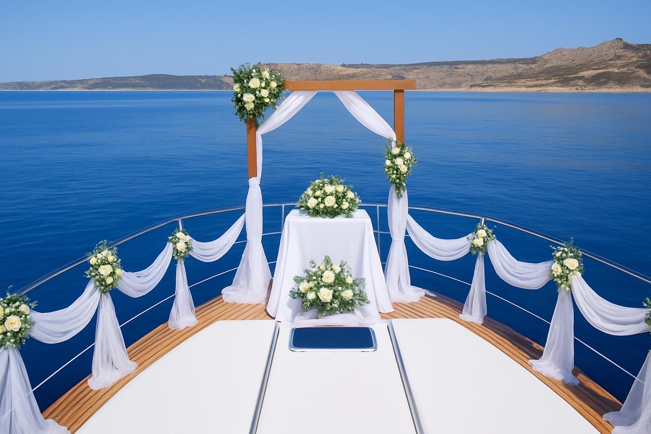 For couples who dream of a wedding wrapped in luxury, privacy, and breathtaking beauty, our modern yacht offers an unforgettable setting. With its elegant design, spacious deck, and mesmerizing view of the endless blue, the yacht creates a romantic atmosphere like no other. Located at the port of Kardamaina village, this yacht is perfect for those who appreciate sophistication, exclusivity, and the magic of open waters. A truly extraordinary, unique way to say “I DO.”